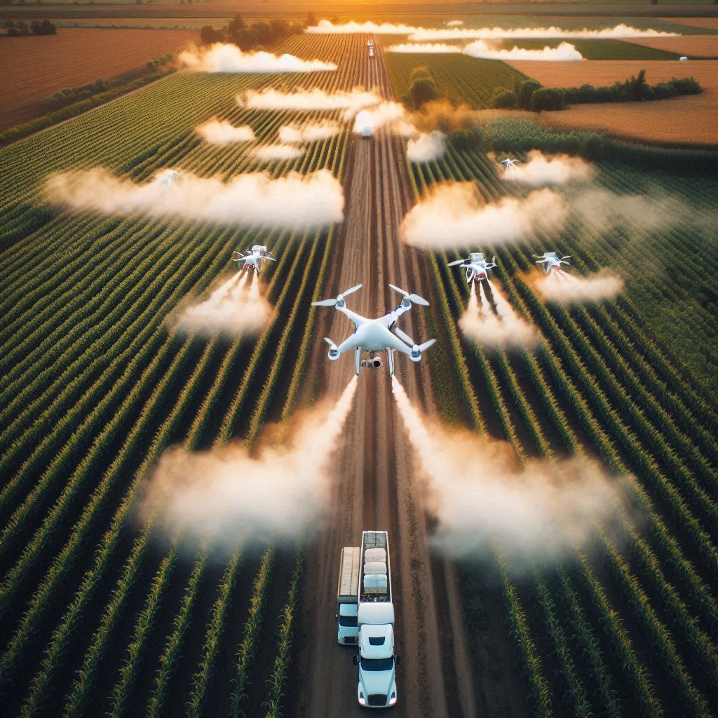 پخش کود و سموم: پهبادها قادرند کود و سموم را بهصورت دقیق و هدفمند روی مزارع پخش کنند. این کار باعث میشود که از هدررفت مواد و آسیب به محیط زیست جلوگیری شود و مصرف سموم کاهش یابد.